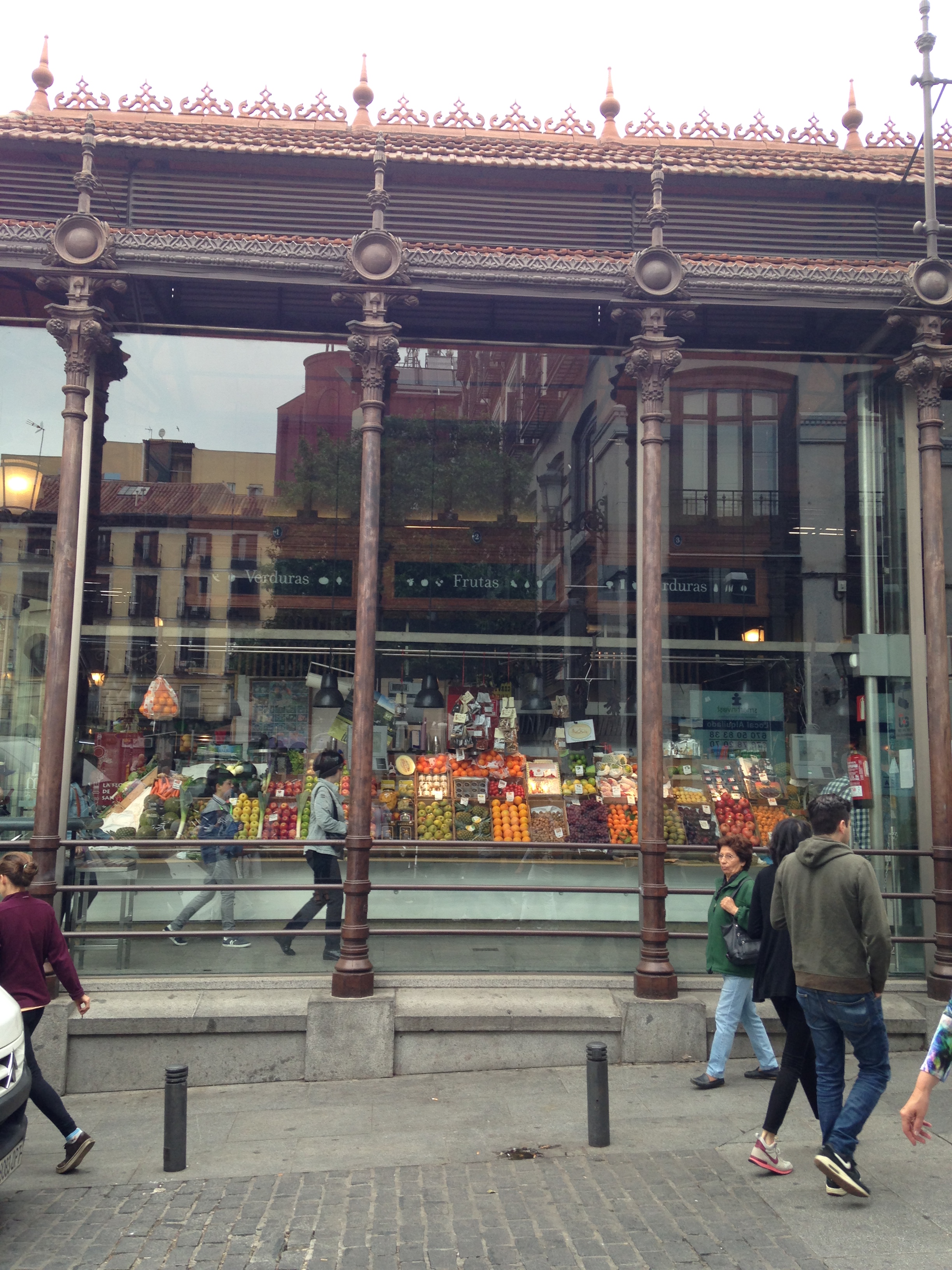 Madrid , pour moi ce sont des places, des petits restaurants, des musées et du shopping…. laissez-vous aller à des balades au grés de vos envies …. et vous tomberez sur le merveilleux marché de San Miguel juste derrière la Plaza Major… marché avec ces étales et ses caisses au XIX ème siècle, il fût couvert et fermé par une structure de fer et inauguré en 1915 pour palier aux problèmes de salubrité, avec des hauts et des bas dans son histoire comme en 1999 où il peine à faire concurrence aux grands supermarchés…. un groupe de particulier l’a sauvé en ajoutant aux étales des petits bars …. laissez-vous tenter par des tapas, des fromages, des jus de fruits frais…